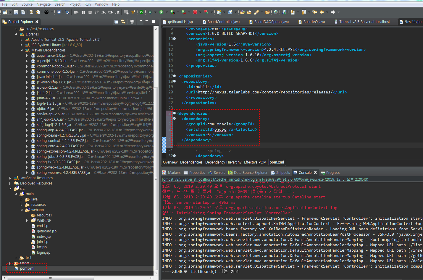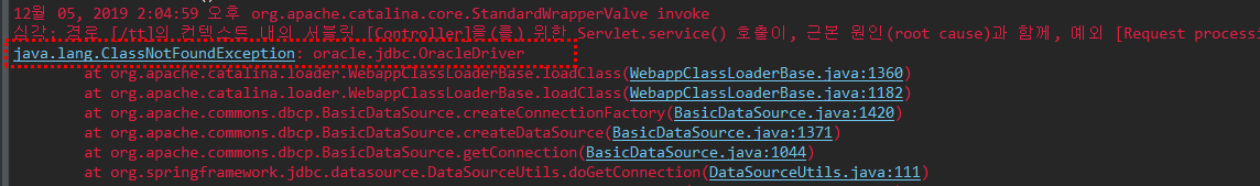 아래와 같이 oracle.jdbc.OracleDriver 문제가 발생한다.
