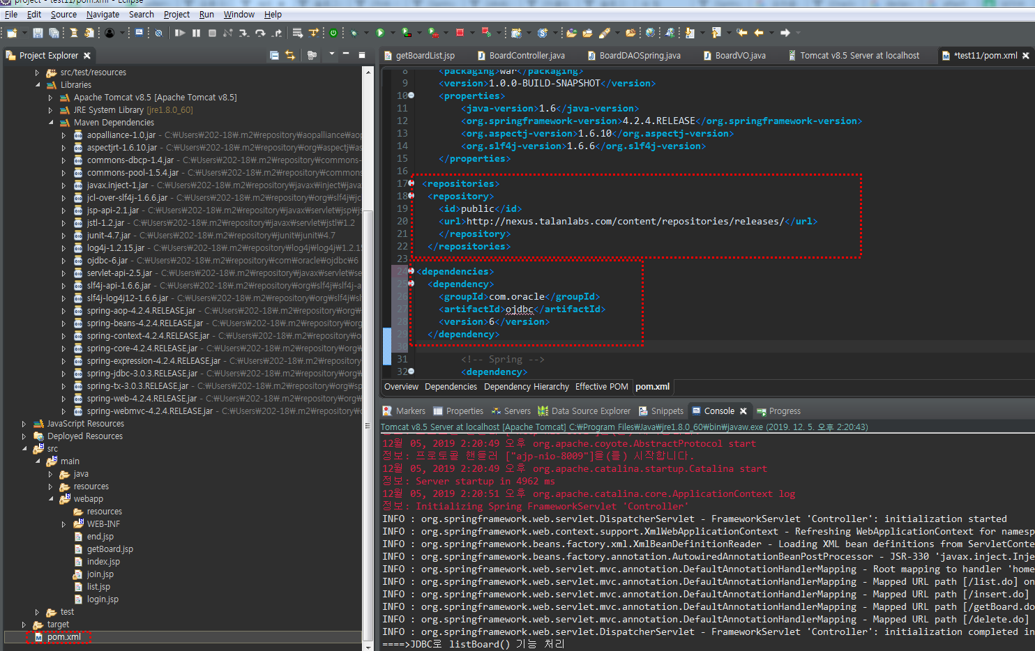 저작권 문제라고 하는데 아래 repository 부분도 추가를 해줘야 jar파일을 불러 올 수 있다.