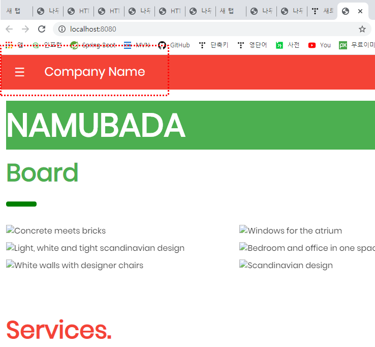 아래사진과 같이 해당 부분에 아래 코드가 없을 경우 아래와 같이 메뉴 단이 깨지게 된다.