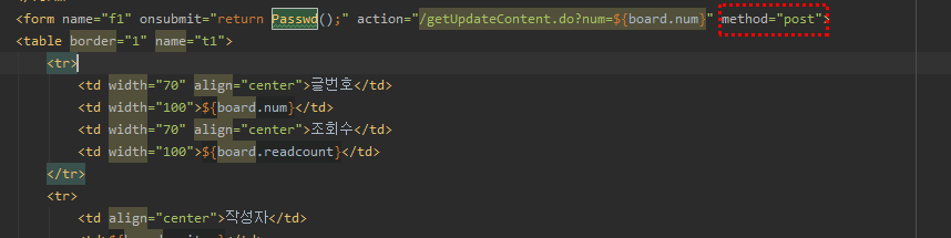 form에 action시 해당 값들을 getUpdateContenet.do에 num 값을 전달하려고 하였다.