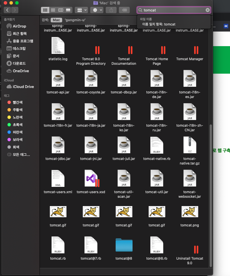 맥의 경우 톰캣 실행을 하려면 터미널로 해야 한다.