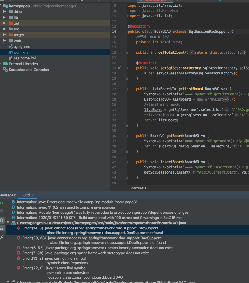 다시 톰캣을 실행하면 이번엔 다음 문제이다.