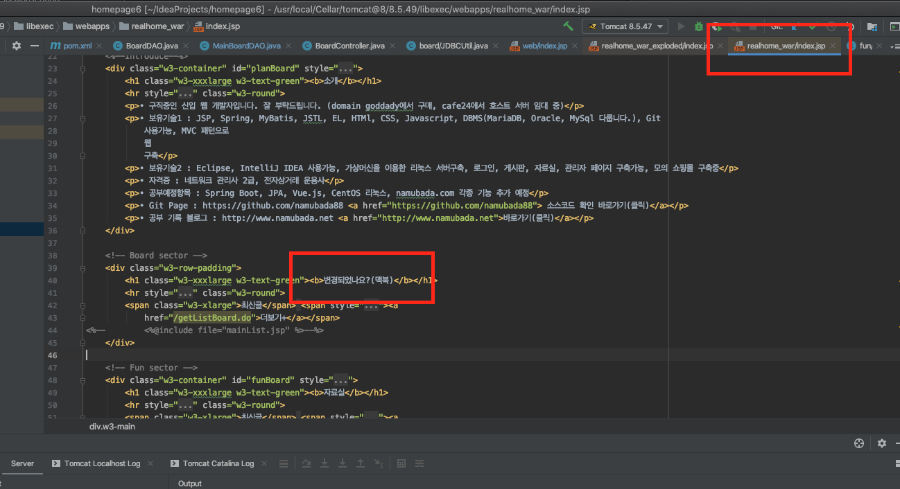 톰캣을 재구동하면 다음과 같이 정상 실행 및 변경한 내용이 반영되는 것을 확인할 수 있다.