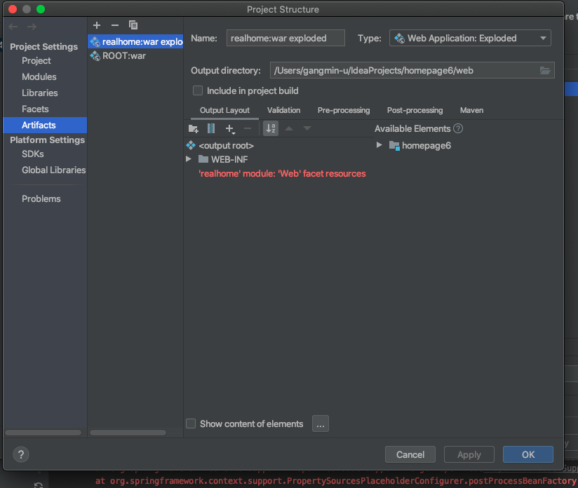 프로젝트 스트럭쳐 > 아티팩츠 > 아웃풋 레이아웃을 본다