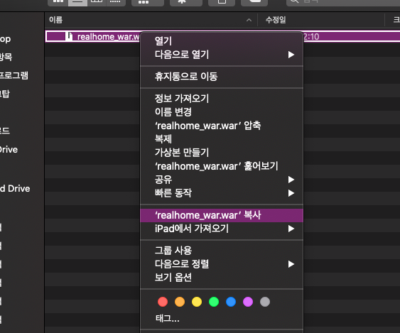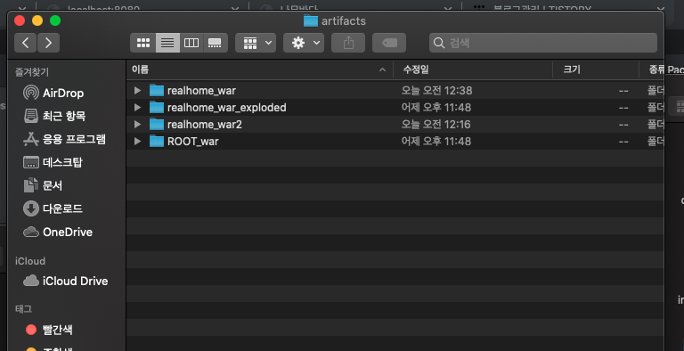 그럼 realhome:war가 생성도니 것을 확인할 수 있다.