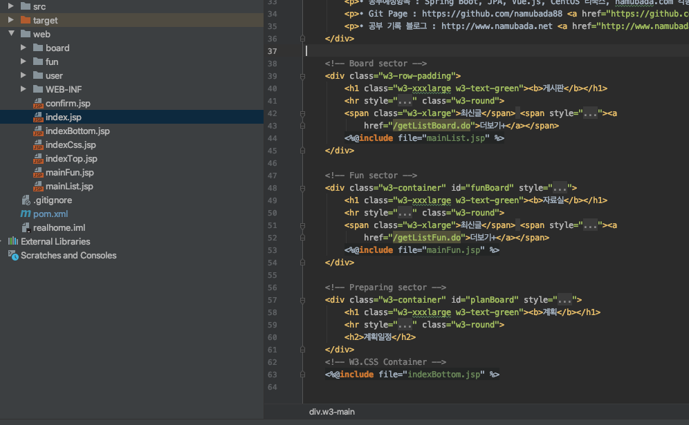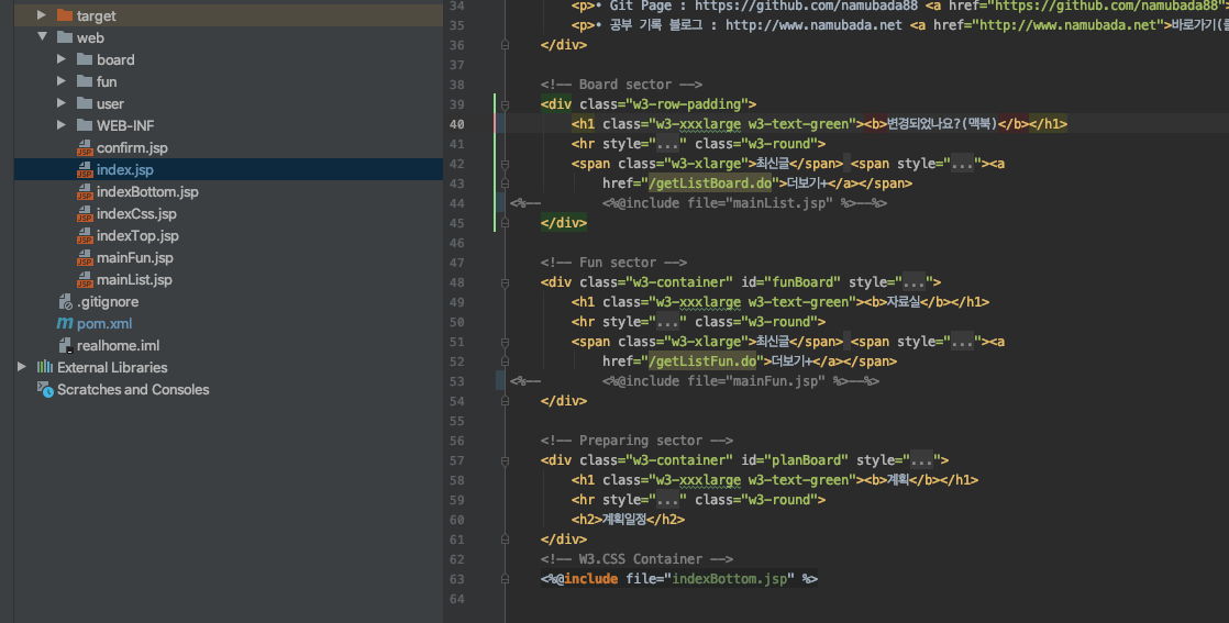 해당 부분을 주석처리하고 게시판이라는 문구를 변경되었나요(맥북)으로 수정하였다
