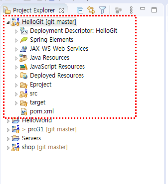우선 git 테스트를 위하여 다음과 같이 Spring 프로젝트를 만든다.