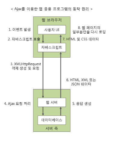 Ajax(Asynchronous JavaScript and XML, 에이잭스)는 비동기적인 웹 애플리케이션의 제작을 위해 아래와 같은 조합을 이용하는 웹 개발 기법이다.