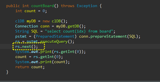 해당 문제의 경우 rs.next()로 해결되는 것으로 확인되었다.