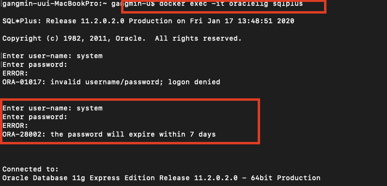 | 4 | docker exec -it oracle11g sqlplus | 오라클 sqlplus에 접속 |