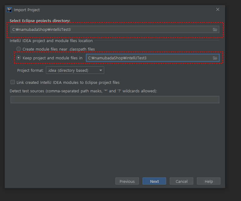 인텔리제이 형식으로 하길 원할 경우 Create modules files를 체크한다.
