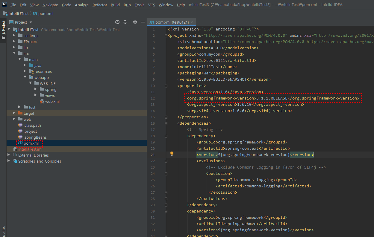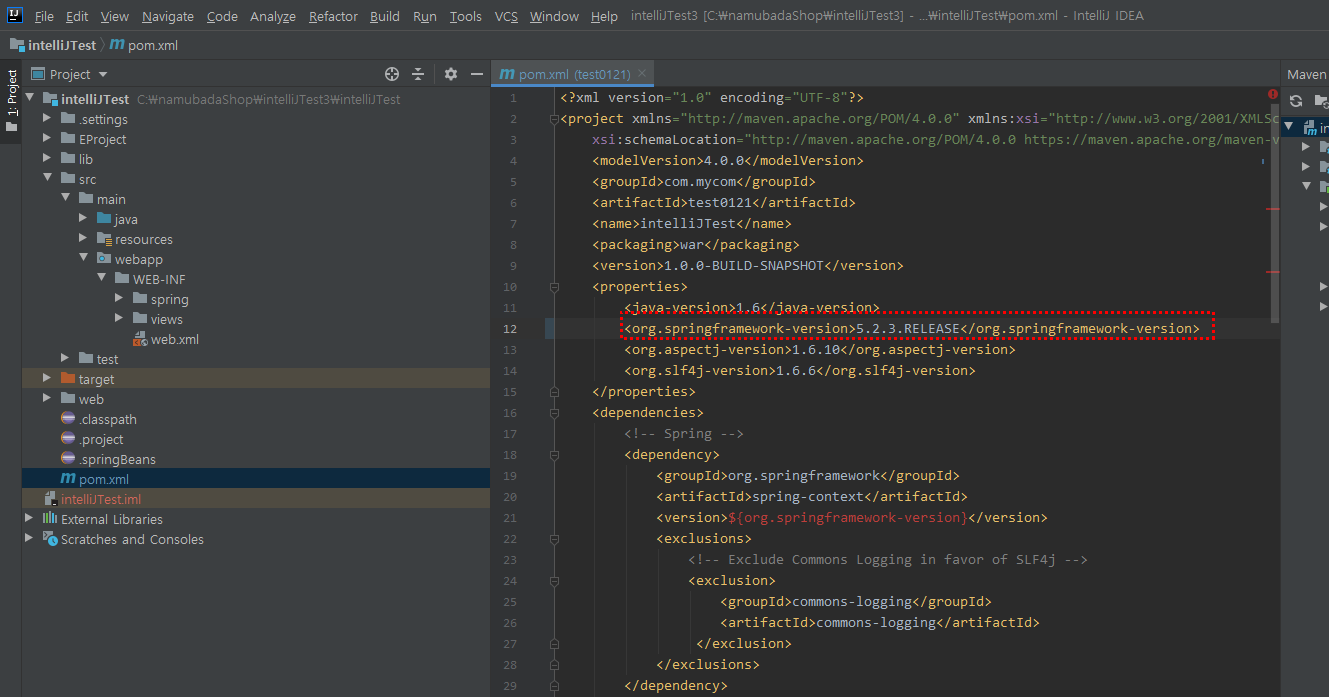 pom.xml에서 3.1.1을 5.2.3으로 버전업시킨다.
