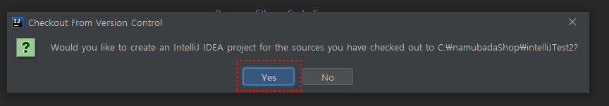 체크아웃한 소스에 대한 인텔리제이 프로젝트를 생성할지에 대한 안내가 나온다.