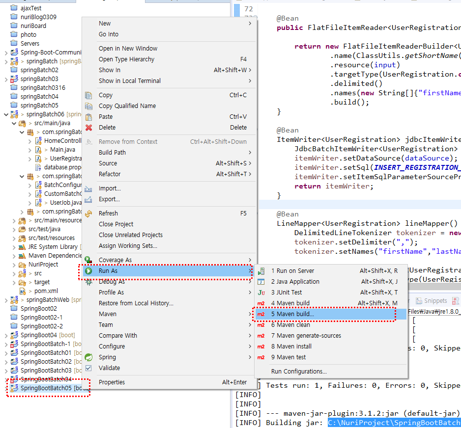 우선 다음과 같이 프로젝트를 Maven 빌드해준다.