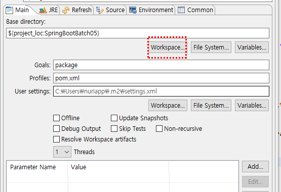 1. 프로젝트를 Run as > Maven Build로 한다.