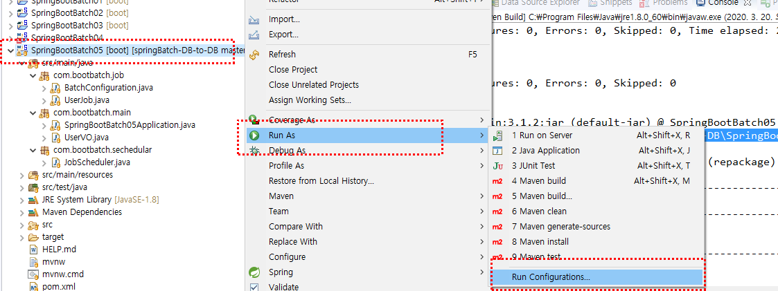 오류원인 : 메이븐 빌드시 Run configuration의 pom.xml 문제로 확인됨