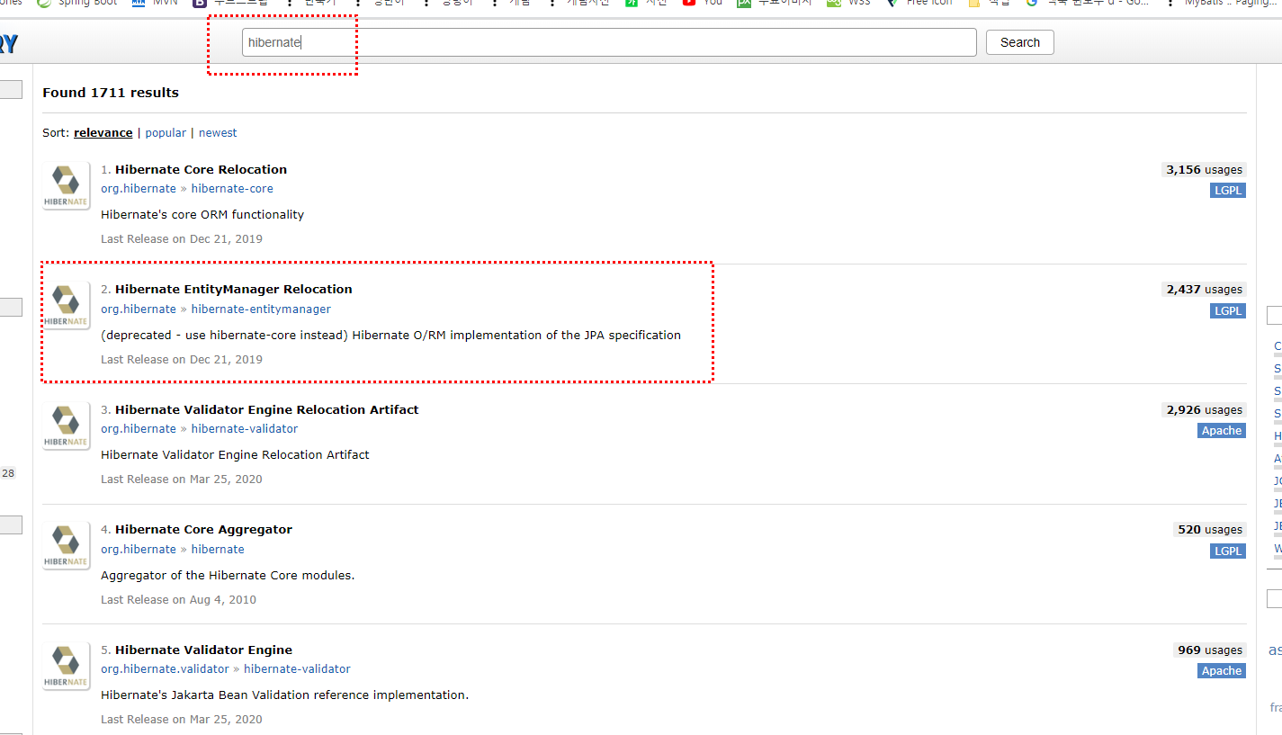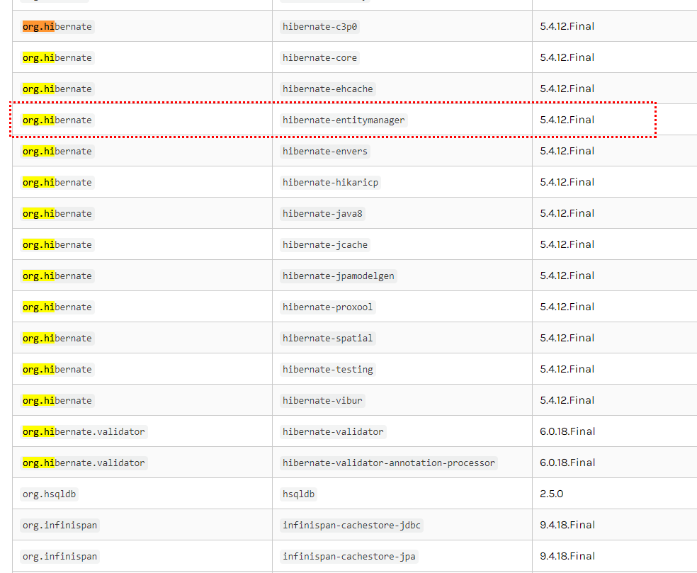필자는 hibernate를 추가할 것이기 때문에 다음과 같이 버전을 확인한다.