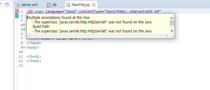 jsp 파일 생성시 The superclass "javax.servlet.http.HttpServlet" was not found on the Java Build Path 오류 발생